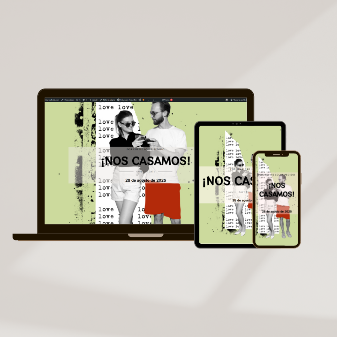 - Una página con la información principal de tu evento, igual que en el ejemplo.
